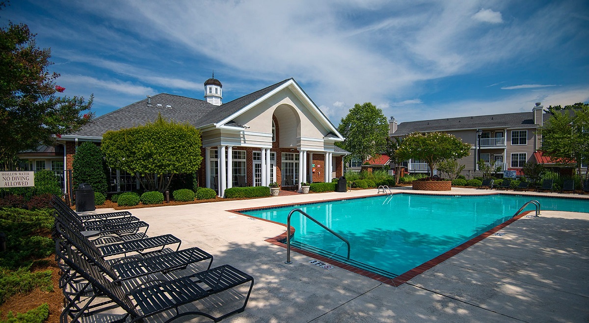 This community, located at the end of a cul-de-sac in I-77 Business Park, offers convenient access to Interstate 77 and nearby employers, such as Blue Cross Blue Shield of SC, Providence Hospital and Carolina Research Park. The community consists of nine 3-story residential buildings complemented by a clubhouse/leasing office, resort-style swimming pool, fitness center, business center, car care center, and laundry center. The grounds are extensively landscaped and tucked behind private security gates, providing residents a desirable retreat that belies its close proximity to I-77 and the surrounding businesses. Unit amenities include vaulted or nine foot ceilings with crown molding, wood burning fireplaces, ceiling fans, six-panel doors, sunrooms with decorative columns and ceramic tile floor, private patio/balcony, full-size washer and dryer connections, fully equipped kitchen, pantry, spacious walk in closets, and garden tubs.